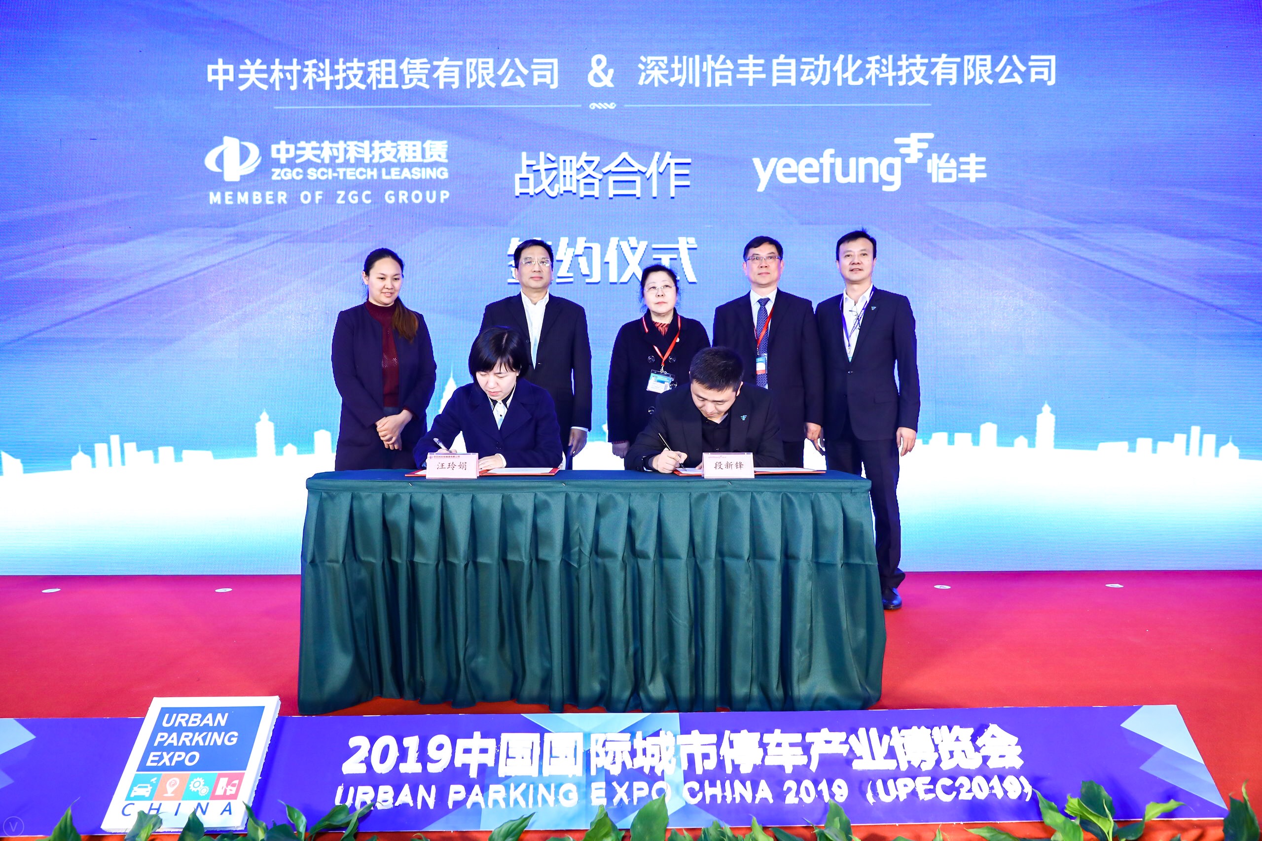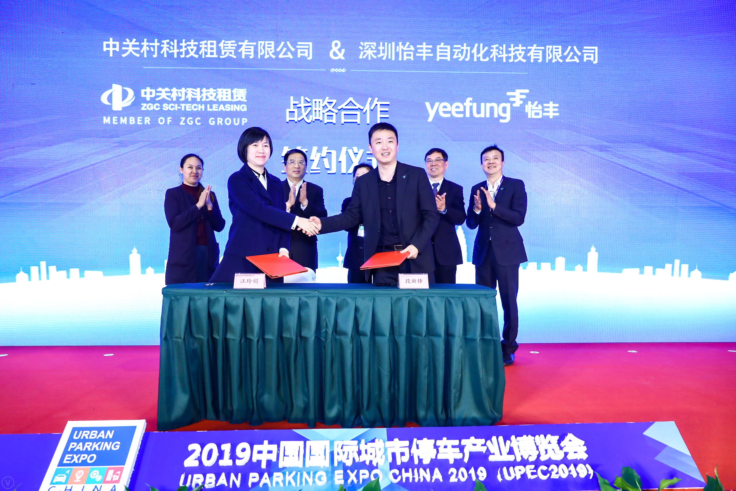 峰会同期,在中国重机协会停车设备工作委员会会长明艳华、中国重机协会停车设备工作委员会秘书长张敏、中国城市公共交通协会副理事长兼秘书长刘举、中国市政工程协会城市停车分会副会长兼武汉市机动车停车场行业协会会长孙晓波等领导的共同见证下,怡丰集团副总经理、投资公司总经理段新锋与中关村科技租赁大智造事业部总监汪玲娟分别代表各自公司签署了战略合作协议。
